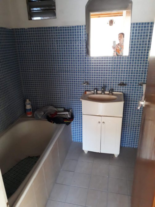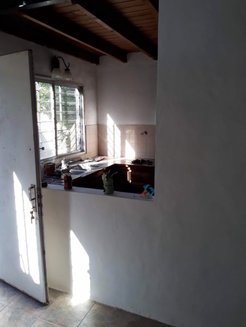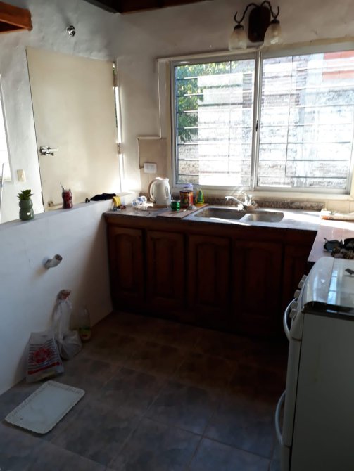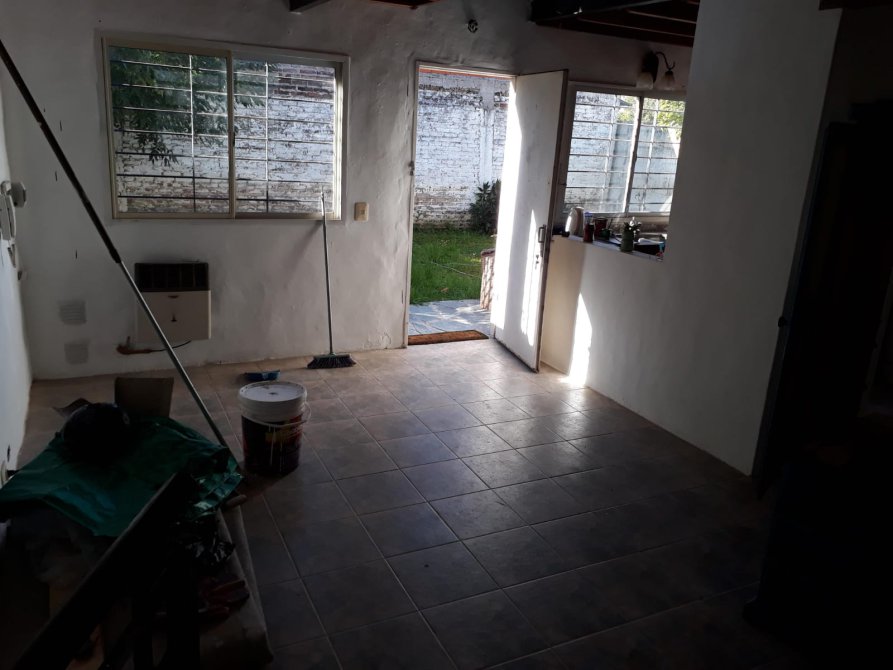 • planta baja: comedor con cocina y barra divisoria, baño completo con bañera y detalles en venecitas, dormitorio de 5 x 4 m con piso de madera flotante